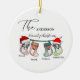 Niedliche personalisierte Weihnachtsschmuck für eine Vierpersonenfamilie. Sie können es anpassen, indem Sie das Jahr und Ihre Namen hinzufügen.