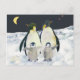 Adorable Kaiserpinguinfamilie in der kalten Winternacht der Antarktis, illustriert auf Postkarten. (Kontaktieren Sie ujean4791@gmail.com für benutzerdefinierte Arbeiten und/oder passende Elemente)
