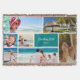 Erinnern Sie sich an Ihren Familienurlaub mit dieser schönen, modernen Handtücher mit Platz für sieben Ihrer Lieblingstouren Fotos. Am unteren Rand befindet sich eine aquamarine Box für Ihren individuellen Text, wie z.B. das Jahr Ihres Urlaubs, Ihren Familiennamen und/oder Ihr Reiseziel. Diese Hausdecke ist für viele Jahre ein wertvoller Sake.