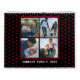 Personalisieren Sie Fotos für die Familiensammlung auf der Vorderseite des Kalenders. Fügen Sie für jeden Monat ein Foto hinzu. Rotes Herz Ballon Rand Muster schwarzen Hintergrund. Die Fotos der Familie sind Beispiele, die Sie selbst ändern, wenn Sie sie personalisieren. Wenn es ein gelbes Warnsymbol gibt, bedeutet dies, dass Ihr Foto zu klein ist. Fügen Sie entweder ein größeres Foto hinzu oder bearbeiten Sie es, um den Bereich kleiner zu machen. Der Schriftart im Skriptstil und die Farben können geändert werden, wenn Sie weitere Anpassungen vornehmen.