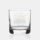 Wunderschönes Whisky-Glas aus dem Familiensee mit dem hübschen blauen Wasser unter dem Wald von Bäumen und coolem orangefarbenen Sonnenuntergang. Niedliche Camping-Ausflüge bewahren Souvenirs für Ihre Natur- oder Wildnisgruppe.