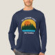 Beautiful family lake vacation long sleeve t-shirts featuring the pretty blue waters under the forest of trees and cool orange sunset. Cute camping trip matching tees for your nature outing or wilderness group.