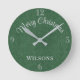Family Name Merry Christmas Green Denim Print 8-in Runde Wanduhr