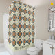 You love bold and colorful Spanish (or Portuguese) tile patterns, so why not add a heavy dose of fun and personality to your bathroom! This is a colorful and boldly beautiful shower curtain, and it is part of a coordinating collection of washroom decor. Tiles are arranged in a pattern to give a dynamic blue, orange and soft cream eclectic floral aesthetic. You can easily personalize the text at the bottom to be your family name, your name or any short phrase you like. If you want to omit the text for a more modern minimal look, go into the design editor and leave it blank.
