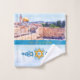 How delightful it is to have a perfectly coordinated bathroom, from shower curtains to bathmats, paired with a luxurious towel set personalized with the family name. This exquisite set, available as a complete ensemble or individual pieces, is truly a work of art for your home. Featuring a mixed-media illustration styled as an oil painting of the Eastern Wall, also known as the Prayer Wall in Jerusalem, it beautifully captures the ancient ruins of the Temple Mount. Adorned with the Star of David framed by olive branches, a turtle dove, and a star, the design’s rich blue hues celebrate and honor Israel as the Holy Land. The washcloth is inscribed with “Holy City of God,” and can be customized with your own name or meaningful phrase. This remarkable set makes an unforgettable gift for newlyweds, loved ones, or as a thoughtful present for a gracious host at your next gathering.