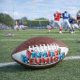 A bold, custom Family Reunion football featuring bright red‑white‑blue lettering — perfect for outdoor games, keepsakes, and event décor.