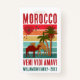Stylish Group Family Vacation ID Badge with CUSTOMIZABLE TEXT, featuring colorful vintage sunset design with camels and trees. In the top left hand corner, there is the Moroccan flag in the shape of a heart. The text is bold grunge sans serif typography, with family name and year. The Latin phrase says VENI VIDI AMAVI, which means I CAME, I SAW, I LOVED. On the back you have up to 7 lines for your contact details and group information. ALL TEXT IS CUSTOMIZABLE so you can make this totally PERSONALIZED for your family or group. Matching gifts and Marrakech version available. Contact me for design queries.