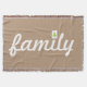 Tan und weiße "Familie" Typografie Design mit einem grünen Baumakzent über dem "i". Moderner Text in Kleinbuchstaben.