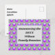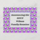 Mit diesen attraktiven und preiswerten Postkarten kündigen Sie Ihre Wiedersehen an. Das Muster vorne zeigt ein lebendiges blaues und lila Polka-Punktmuster auf dunkelgrauem Hintergrund. Das Zentrum verfügt über ein blau-graues Rechteck, um den Hintergrund für Ihre Ankündigung, Familienname und Jahr zu liefern. Die Rückseite der Postkarte bietet viel Platz für Ihre Veranstaltungsdetails.