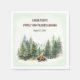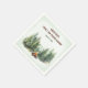 Papierservietten mit Kiefernwald und Lagerfeuer. Alles ist in Weiß und Hellgrün gehalten. Ideal für Ihre nächste Familienfeier, Wiedersehen, Geburtstag oder ein Naturereignis. Personalisieren Sie den gesamten Text einfach. - Kate Eden Art.