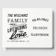 Family Wiedersehen Guestbook The Williams Family ( Sie können den Namen ändern), wo das Leben beginnt und die Liebe nie endet. Schwarz-Weiß-Typografie, Elegantes Gästebuch für Wiedersehen und Hochzeitsfeier, Sie können Ihren Namen und Ihr spezielles Datum hinzufügen und den Text "Wiedersehen" und "Gästebuch" ändern.