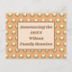 Erzählen Sie Ihre Wiedersehen mit diesen schönen und günstigen Postkarten. Das Muster auf der Vorderseite weist ein elegantes goldfarbenes Punktmuster vor einem dunkelpfirsichfarbenen Hintergrund auf. Das Zentrum verfügt über ein braun umrissenes Rechteck mit blasser blasser Mitte, das den Hintergrund für Ihre Ankündigung, Familienname und das Jahr liefert. Die Rückseite der Postkarte bietet viel Platz für Ihre Veranstaltungsdetails.