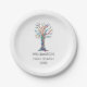 Fügen Sie diese stilvollen Wiedersehen-Papier-Teller der Familie zu Ihrem Party-Dekor hinzu. Sie haben einen Stammbaum in den Farben des Regenbogens. Passen Sie sie mit Ihrem Familiennamen und dem Jahr an. Dieses einzigartige Design ist ein Ausdruck meines Mosaiks "Family Tree", das aus winzigen Glasstücken in lebhaften Farben hergestellt wurde. Original Mosaik © Michele Davies.