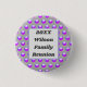 Erstellen Sie einen einzigartigen Button für Ihren Familienurlaub oder Ihren Familienurlaub. Das Muster auf diesem runden Knopf weist ein lebendiges lila Polka-Punktmuster auf einem dunkelgrauen Hintergrund auf. Das Zentrum verfügt über ein blau-graues Rechteck, das den Hintergrund für Ihren Familiennamen und das Jahr liefert. Schnell und einfach personalisieren Sie den gesamten Text für Ihre nächste Familienveranstaltung.