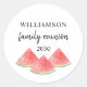 Dieser Aufkleber ist mit Wasserfarben-Wassermelonen-Scheiben verziert. Einfach anpassbar. Ändern Sie mithilfe des Entwurfstools die Textgröße, den Stil oder die Farbe. Sie werden dieses exakte Bild von anderen Designern nicht finden, während wir unser Kunstwerk erstellen. Original Wasserfarbe © Michele Davies.