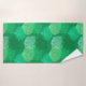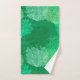 Handtuch-Set in einem Unterwassermuster überlappende Fächerkoralle in Pastelltönen bis tief in Weiß und Grün auf einem mitteljängigen grünen Hintergrund