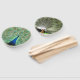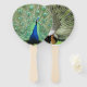 Pfau mit gefangenem Schwanz. Eine Seite zeigt den blauen Schwanz mit den grünen und blauen "augen" Federn, die Rückseite zeigt den Vogel mit den weißen und braunen Federn.