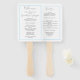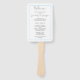 Minimalistische Fan Hochzeitsprogramme auf einem Stock. Weiße Tafel mit grauen Vorlagen in modernen handgeschriebenen Schriftart, um für Ihre Veranstaltung zu personalisieren. Sobald die Karten am Stick befestigt sind, wird Text auf beiden Seiten angezeigt. Eine dünne, aqua blaue Linie umrahmt den Text für eine einfache Präsentation, die zu jedem Thema passt.