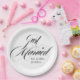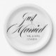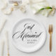 Entspannen Sie bei einem Hochzeitsempfang mit unseren exquisiten Tellern, die ein atemberaubendes "Just Married"-Design in elegantem Schriftzeichen bieten. Einfach mit unserer Vorlage personalisieren oder mit dem Designwerkzeug weitere Farb- oder Textänderungen vornehmen.