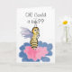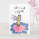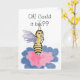 Ein niedliches digitales Design einer überraschten komischen Honigbiene gepolstert in einer großen Blume fragend "Oh! Könnte es sein?" Ein Geburtstagsgruß ist drinnen.