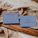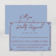 Eine einfache und elegante Kalligrafie-Hochzeits-RSVP-Karte. Mit einem blauen Hintergrund und einem tiefroten burgunderroten handgezeichneten Rahmen und Infos.