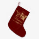A stocking fit for royalty! Features gold crown and divider illustration on cranberry red background. Customizable text in modern gold script font