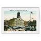 Faneuil Hall, Boston, Massachusetts, bekannt als die "Wiege der Freiheit". Vintage Postkarte erhöht für die vibrierenderen, mutigeren Farben durch Szenen von der Vergangenheit. Gefunden im Herzen von Boston, ist historischer Faneuil Hall Markt der "Zugang nach Boston" gewesen. Faneuil Hall hat als Markt und Sitzungshalle seit 1742 gedient. Finanzierung wurde von einem wohlhabenden Kaufmann, Peter Faneuil zur Verfügung gestellt, damit den Bau und der lokale Handwerker die diese Heuschreckenwetterschaufel ruhige Stangen auf der Kuppel des Gebäude herstellt. Inspirierend Reden durch Samuel Adams und andere Patrioten wurden bei Faneuil Hall gegeben. Diese Rhetorik wurden der Schemel, damit Amerikas Wunsch Unabhängigkeit von den Briten erreicht.