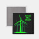 Fang den Wind! - mit einer Grafik einer Gruppe moderner Windkraftanlagen in lebhaftem Grün auf schwarzem Hintergrund.