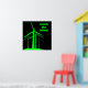 Fang den Wind! - schwarzes Poster mit leuchtend grünen Windblown-Schriften und einer Windturbinencluster-Grafik.