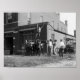 Feuerwehrschule, 1920er. Ein Feuerwehrmann, der von einem Dach auf einen Feuerwehrtrampolin springt.