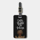 Dieses Gepäckanhänger-Design enthält das Zitat "Catch Flights Not Gefühle" in Weiß und eine natürliche Schönheit mit einer vollen geschwungenen, goldfarbenen Halskette, Hopfen und roten Lippen auf einem schwarzen Hintergrund.