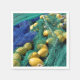 Fischernetze und gelbe Schwimmer im spanischen Hafen