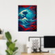 Ein lebendiges Fantasy-Kunstwerk, das vom Klassiker der Großen Welle inspiriert wurde und mit kühlem, blauen Wasser, Kirschblüten in feurigen Rot und einer Fernsicht auf den Fuji neu erfunden wurde. Diese mächtige Mischung aus japanischer Tradition und Fantasie-Stil ist ein beeindruckendes Stück für Liebhaber japanischer Kunst, Meeresthemen und dramatische Landschaften.