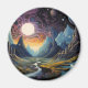 Fantasielandschaft mit Bergen, Fluss und Mond Digitales Bild, Stellar Odyssey Eine psychedelische Reise durch den Weltraum,