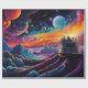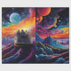 Fantasielandschaft mit Schiff und Planeten Geschenkpapier
