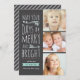 Ein süßer Wunsch für frohen und hellen Weihnachten wird mit diesem modernen Entwurf gesendet, der eine reizende Handbeschriftung kennzeichnet und hervorgehoben durch erröten illustrierte Rollen herein und Aqua-Set gegen einen grauen Hintergrund mit Raum für drei Fotos Ihrer Familie. Ein reizend und spielerischer zeitgenössischer zu senden der Familie und den Freunden Gruß, diese Ferienzeit.