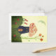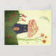 Fantastische Postkarte mit Pilzhaus, zwei Gnomen, einem Halbmond und fantastischen Blume.