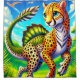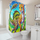 Dieser Duschvorhang hat ein Fantasiewesen darauf.