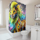 Dieser Duschvorhang hat ein Fantasiewesen darauf.