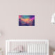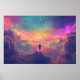 Das Poster ist ein Bild mit farbenfrohen Farben und einer traumhaften Atmosphäre. Die Person, die alleine in der Mitte stehend ist, lässt Sie sich von der Atmosphäre des Bildes überwältigen. Man fühlt sich von der fantastischen Landschaft überwältigt, indem man sich in die Landschaft einfügt.