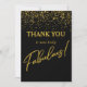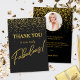 Vervollständigen Sie Ihre fantastische Geburtstagsfeier mit dieser eleganten Dankeskarte aus der Fabulous Birthday Photo Collection! Ein atemberaubendes Design mit schwarzem und goldenem Glitter und einem anspruchsvollen Druckeffekt sorgt für einen bleibenden Eindruck. Ein unvergessliches Andenken, das Ihre Gäste aufbewahren werden! Personalisieren Sie es mit Ihrem Foto und einer herzlichen Nachricht auf der Rückseite, indem Sie den vorgeschlagenen Dankestext verwenden oder Ihre eigene persönliche Nachricht erstellen. Kombinieren Sie es mit passenden Einladungen, RSVP-Karten, Banner, Partydekorationen, Servietten, Untersetzern, Tellern, Tassen und Dekorationen für eine stimmige Feier. Verfügbar in gedrucktem oder herunterladbarem Format. Für persönliche Anpassungsunterstützung kontaktieren Sie remidevandesigns@gmail.com. RemideVan©
