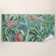 Fantastische fantastische mysteriöse tropische Regenwald-Design mit grünen tropischen Blätter, Schmetterlingen und tropischen rot-rosa Blume.