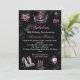 Fantastischer Geburtstag Pink Silver Black Tiara High Heel Schuhe Elegantes Candelabra Weinglas Schwarze Einladung. Hübsch und Juwelen. Bitte beachten: Alle flachen Bilder! Sie haben keine echten Juwelen.