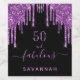 Für eine moderne, trendige und glamouröse 50. Geburtstagsfeier (oder jedes Alter). Ein klassisch eleganter schwarzer Hintergrund mit dunkelfarbenen lila Imitaten Glitzer-Tropfen, Maltropfen aussehen. Mit dem Text: 50 und fabelhaft. Personalisieren und einen Namen hinzufügen. Lila Text. Das Wort Fabulous wird mit einem modernen handgeschriebenen Stilskript mit Swashes geschrieben.
