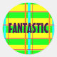 Dieser Aufkleber ist mit einem mehrfarbigen karierten Hintergrund und dem Wort "FANTASTIC" versehen.