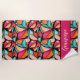 Dieses abstrakte Design mit seinen Blume in Türkis, Beere, Rosa und Orange und den Farbtönen Schwarz macht das Strandtuch zu einem unvergesslichen Erlebnis. Personalisieren Sie Ihre Daten mit Ihrem Namen oder einer Position.