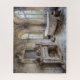 Traumhafte, fantasievolle Kunst, die ein Fantasiebad in einem verlassenen französischen Schloss in einem Staat des Zerfallens darstellt, mit kunstvoll geschnitzten Gipsdekorationen, Marmorkamin und Ziegelporzellanwanne mit Licht, das aus gewölbten Fenstern hereinströmt.