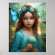 Fantasy Beautiful Cyan Green Fairy Girl Poster