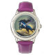 Kinderuhr aus Edelstahluhr mit lila Lederarmband