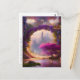 Fantasy-Burg und rosa Blütenbaum in diesem alten Innenhof, dessen Tor von Wisteria bedeckt ist. Von minx267 erzeugte künstlerische KI